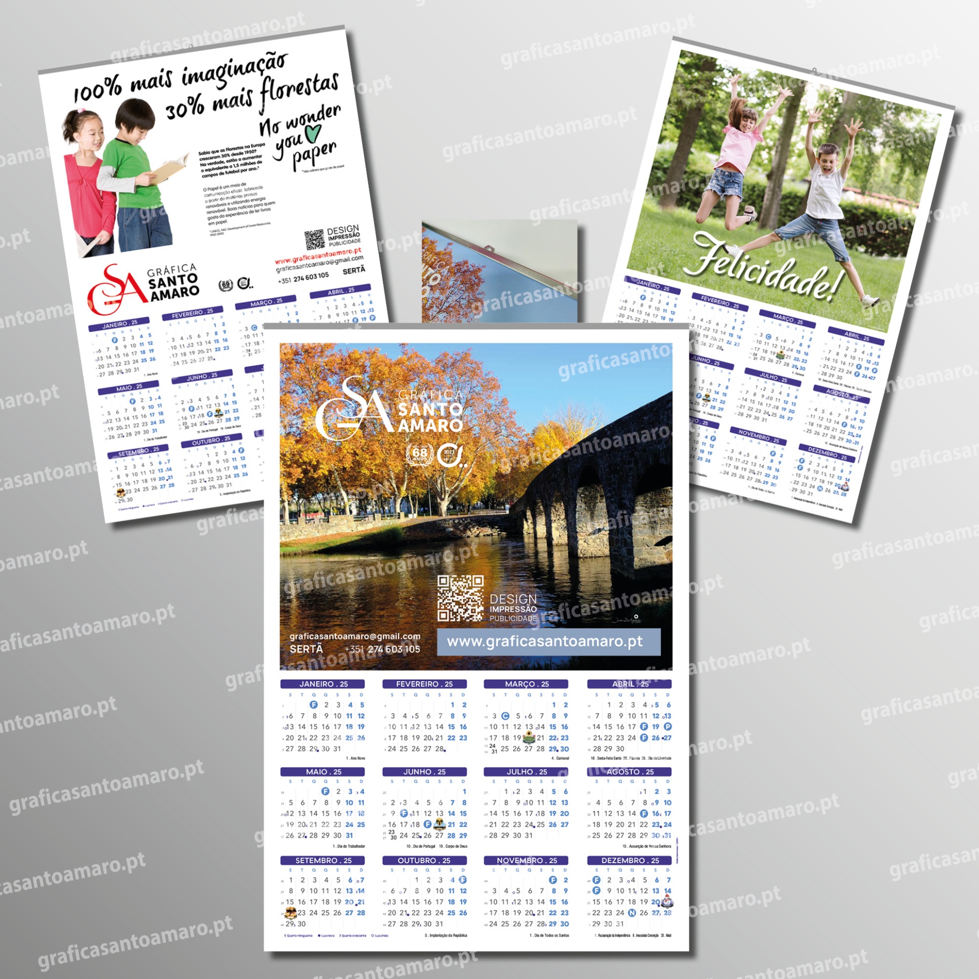Basta enviar o seu ficheiro e nós aplicamos o nosso calendário 2026, o qual já inclui informações sobre feriados portugueses, ciclos lunares e estações do ano;